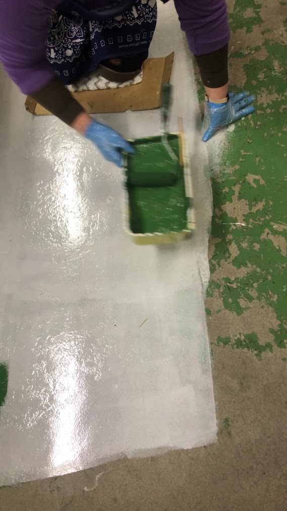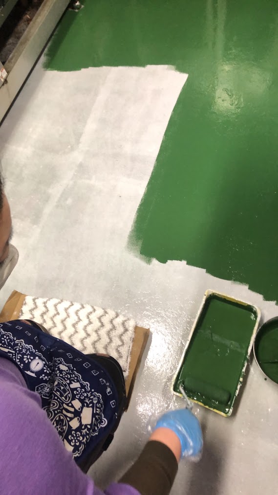 ​悪戦苦闘とはこの事でしたが、塗り上がったピカピカの緑色の床を見たら、綺麗でスッキリして気持ちいい!⁡