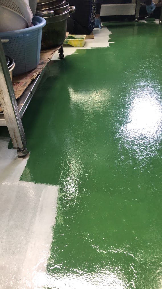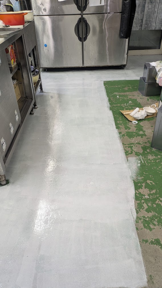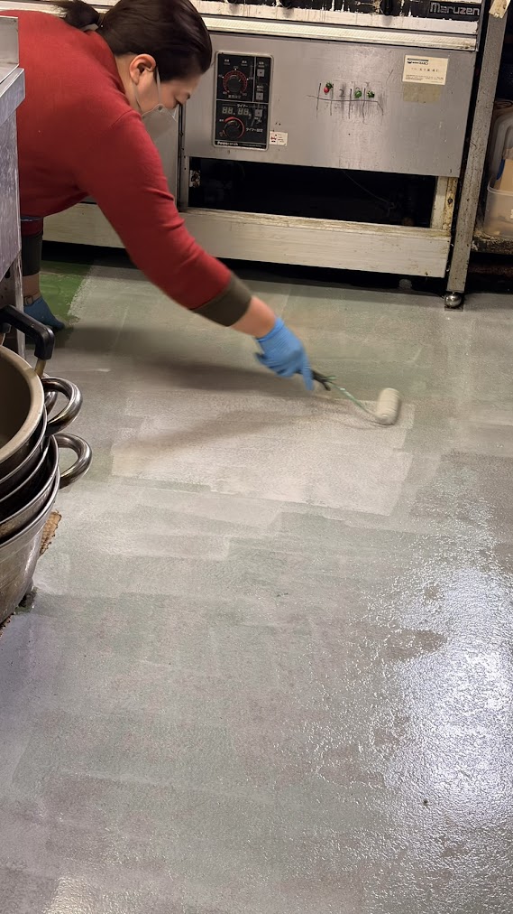 開業から25年。お店を支え続けてくれた厨房の床は、ボロボロでコンクリートが剥き出しになっていました。見ていて気にしてなかったけど、気づいてしまうと、、、気になる!!⁡